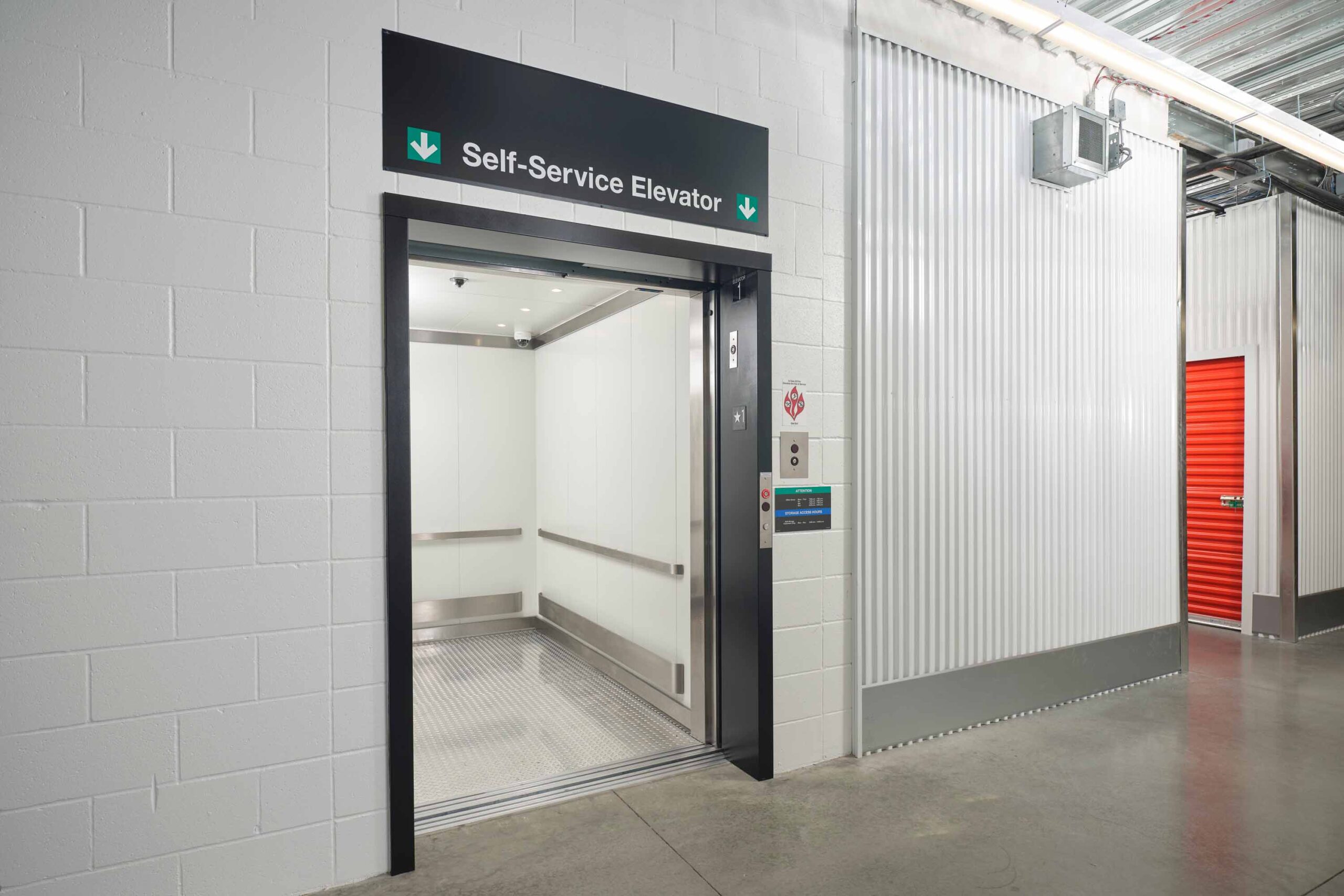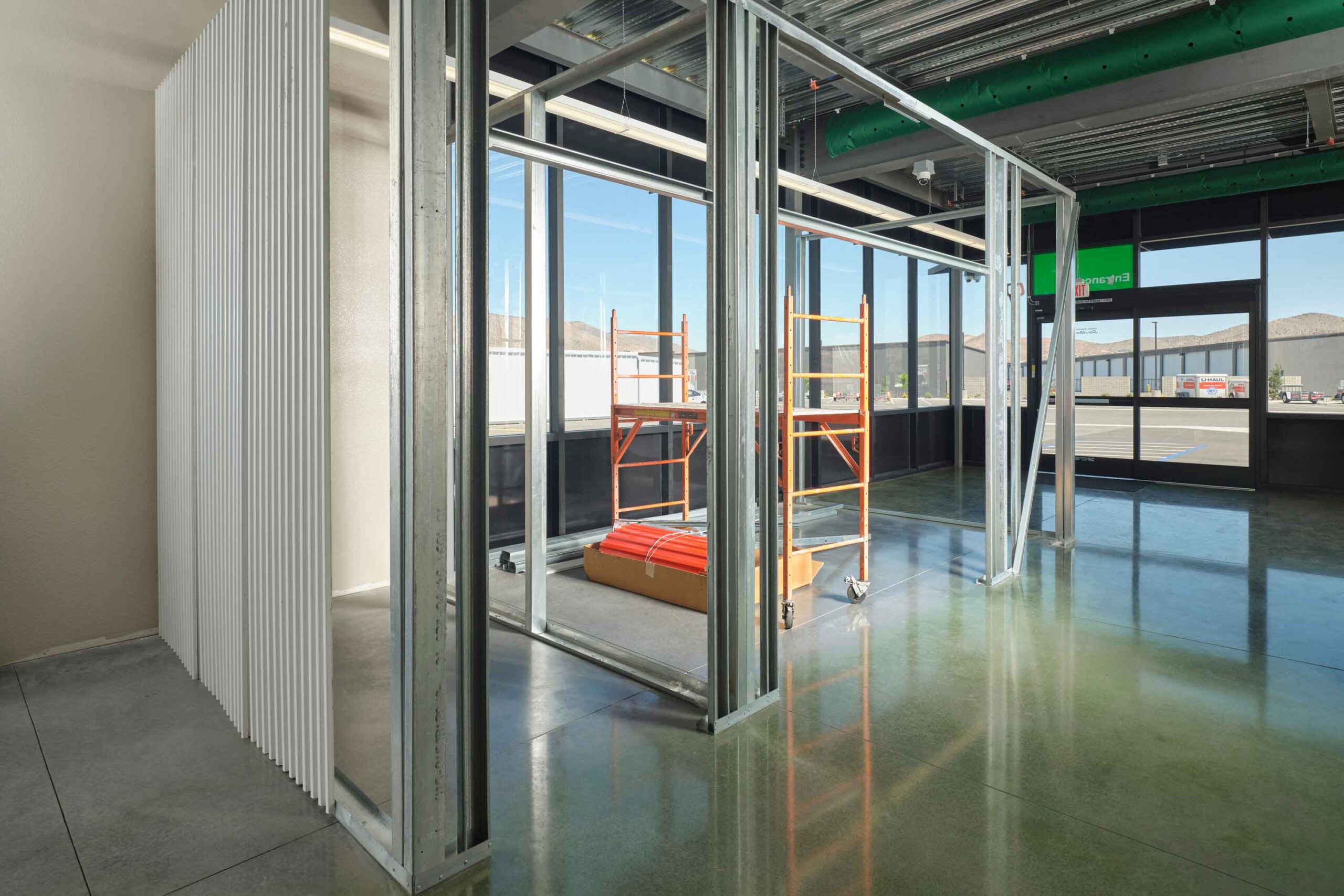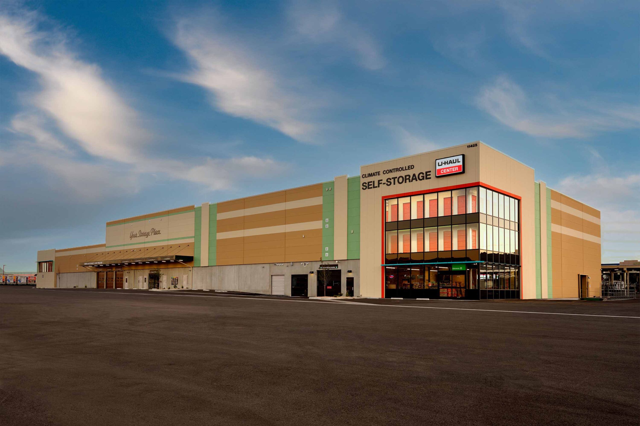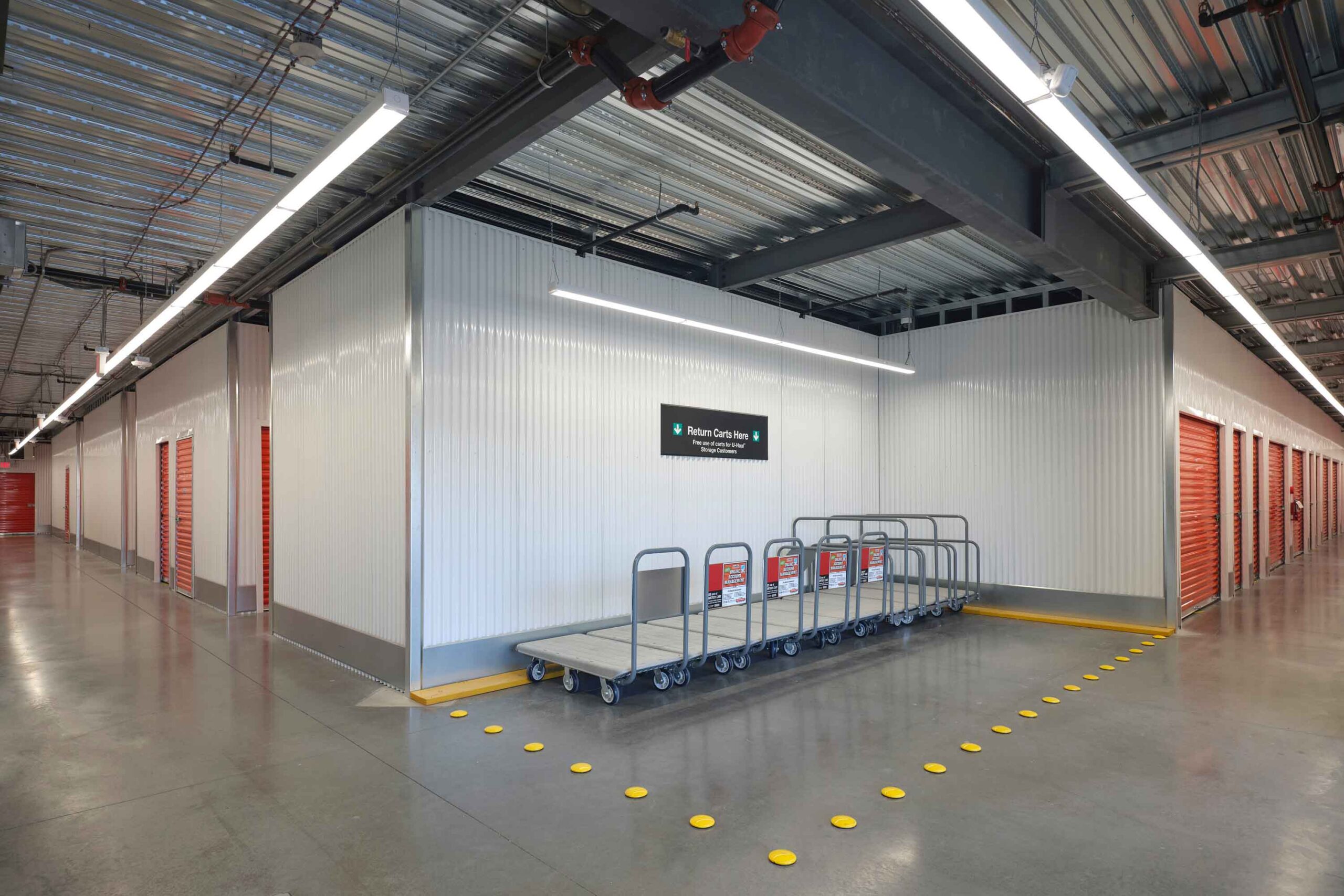 Three-story climate-controlled self-storage facility consisting of exterior concrete and metal panels and structural steel interior.